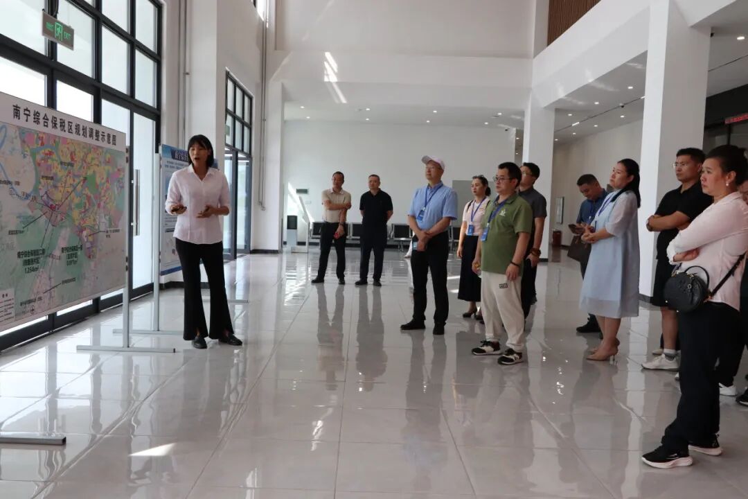 本次活動(dòng)是產(chǎn)城集團(tuán)拓展招商渠道、擴(kuò)大“朋友圈”的重要舉措?;顒?dòng)中,產(chǎn)城集團(tuán)向考察團(tuán)詳細(xì)介紹了“兩港一區(qū)”片區(qū)的總體規(guī)劃、建設(shè)進(jìn)展、產(chǎn)業(yè)布局以及招商政策等,有效傳遞南寧開(kāi)放合作強(qiáng)音,進(jìn)一步提升區(qū)域招商引資吸引力??疾靾F(tuán)一行重點(diǎn)參觀了南寧國(guó)際鐵路港展廳,詳細(xì)了解鐵路港的功能定位、運(yùn)營(yíng)成果及發(fā)展愿景,隨后實(shí)地調(diào)研南寧綜合保稅區(qū)(二期)和臨空經(jīng)濟(jì)示范區(qū)電子信息產(chǎn)業(yè)園,深入了解了“兩港一區(qū)”產(chǎn)業(yè)載體與基礎(chǔ)設(shè)施推進(jìn)情況。